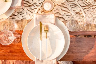 Includes: 3 hours of Picnic Table, Pillows or Wicker Poofs, Rugs, Votives, Napkins, Plates, Glasses, Silverware, Bluetooth Speaker, 1 Dried Floral Arrangement.